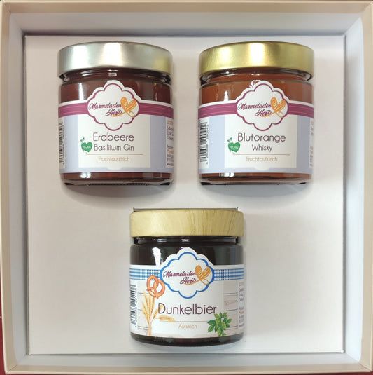 Geschenkboxen von Marmeladenherz – mit Liebe ausgesucht, mit Stil verschenkt. Eine Geschenkbox ist mehr als ein Produkt. Sie ist eine Botschaft: „Ich habe an dich gedacht.“ Unsere Boxen vereinen ausgesuchte Delikatessen, besondere Kleinigkeiten und handverpackte Sorgfalt – für Momente, die bleiben.