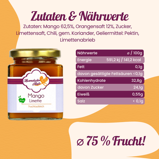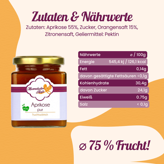 Bei Marmeladenherz verwenden wir keine Zusatz- und Konservierungsstoffe. Stattdessen stecken wir all unsere Leidenschaft in die Frucht. Das Ergebnis: Durchschnittlich hat unsere Marmelade einen Fruchtanteil von 75%. Wir glauben, dass die pure Frische und Natürlichkeit der Früchte den wahren Geschmack unserer Marmelade ausmacht.